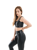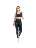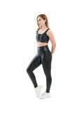 Su acabado efecto cuero aporta un look moderno y atrevido, mientras la tela elástica de alto rendimiento ofrece compresión cómoda y libertad total de movimiento.