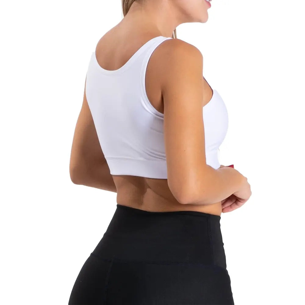 Su diseño de cortes básicos y precisos realza la silueta sin perder funcionalidad. Cuenta con una banda elástica inferior bajo el busto que brinda excelente agarre y soporte, ideal para entrenamientos funcionales, rutinas de gimnasio o actividades de impacto controlado.